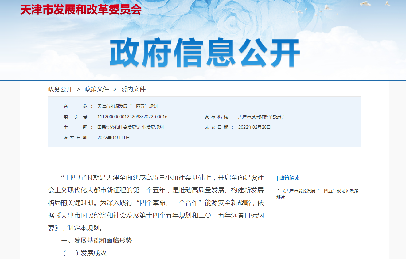 天津市在全國率先提出“打造能源革命先鋒城市”目標,推動全市能源高質量發展,為經濟社會發展提供堅強能源保障。加快推進傳統化石能源清潔高效利用,大力發展新能源和可再生能源,到2025年,全市非化石能源裝機超過800萬千瓦,占總裝機比重達到30%左右。