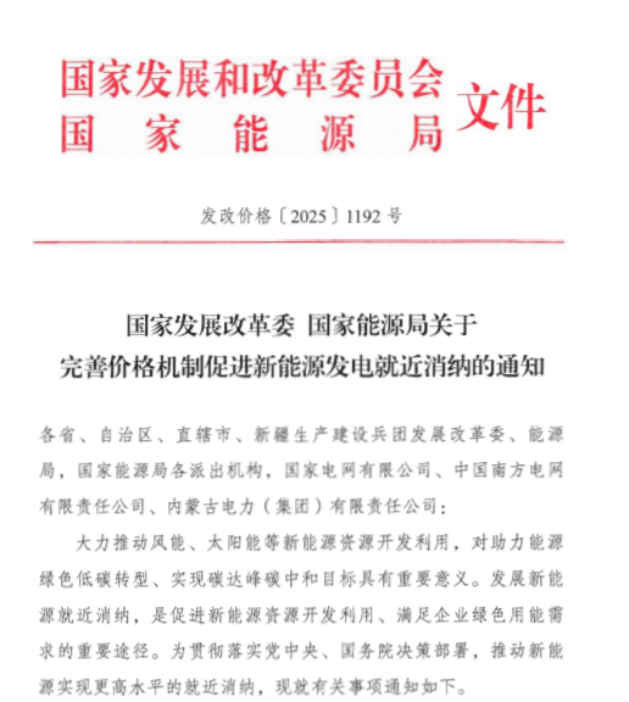 關于公開征求《關于貫徹發(fā)改價格〔2025〕1192號文件進一步明確新能源就近消納價格政策有關事項的通知(征求意見函)》意見建議的公告