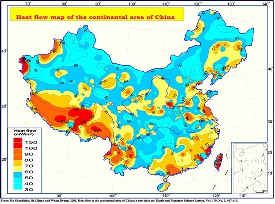 在中國地溫研究中發(fā)現(xiàn),各地區(qū)地溫梯度的變化很大。不同地點地溫梯度值不同,從各地研究經(jīng)驗來講,國內(nèi)地下地溫梯度通常為(1-3)℃/100m,分布具有東部高、西部低;南部高、北部低的總趨勢。