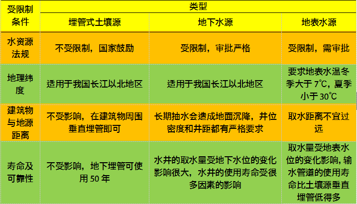 地大熱能專家介紹:地源熱泵空調系統的設計,主要包括兩大部分:一是建筑物內的水環路空調系統的設計;二是地源熱泵空調系統的地下部分的設計,即地下耦合熱泵系統的地下熱交換器、地表水熱泵系統地表水熱交換器,地下水熱泵系統水井系統設計。下面我們對三種地源熱泵系統形式進行對比分析,如表1所示。