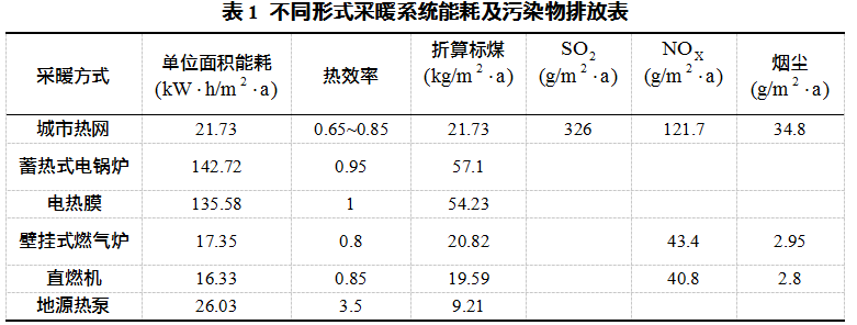 1)不同形式采暖能耗及污染物排放對比