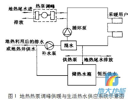 以往計算分析說明[:地?zé)?a href="http://www.xing-ye.com.cn/t/熱泵供暖.html" >熱泵供暖系統(tǒng),以地?zé)峒?a href="http://www.xing-ye.com.cn/t/熱泵.html" >熱泵調(diào)峰供暖方式的供暖成本和投 圖1地?zé)?a href="http://www.xing-ye.com.cn/t/熱泵.html" >熱泵調(diào)峰供暖與生活熱水供應(yīng)系統(tǒng)示意圖資低于熱泵單獨作熱源的供暖方式。